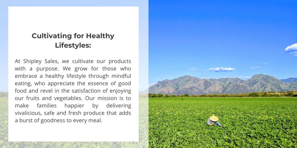 At Shipley Sales, we cultivate our products with a purpose. We grow for those who embrace a healthy lifestyle through mindful eating, who appreciate the essence of good food and revel in the satisfaction of enjoying our fruits and vegetables. Our mission is to make families happier by delivering vivalicious, safe and fresh produce that adds a burst of goodness to every meal.