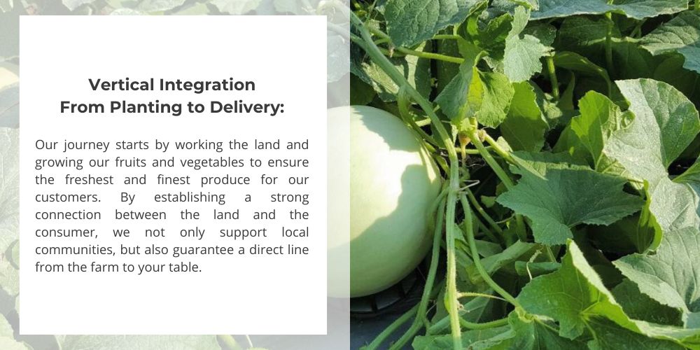 Our journey starts by working the land and growing our fruits and vegetables to ensure the freshest and finest produce for our customers. By establishing a strong connection between the land and the consumer, we not only support local communities, but also guarantee a direct line from the farm to your table.